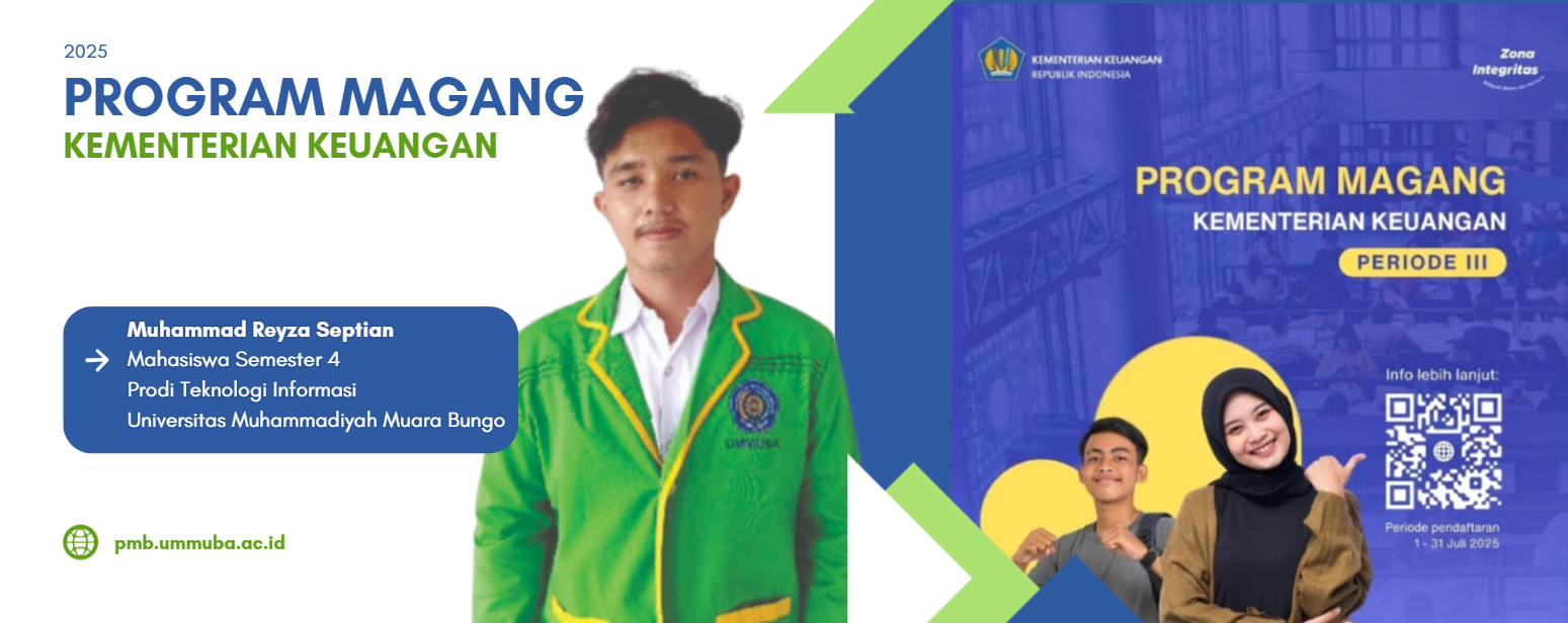 Universitas Muhammadiyah Muara Bungo (UMMUBA) kembali menorehkan kebanggaan melalui prestasi mahasiswanya. Muhammad Reyza Septian, mahasiswa Program Studi Teknologi Informasi semester 4 yang berkompeten dan berdedikasi, berhasil lolos seleksi Program Magang Mandiri Kementerian Keuangan Periode II Tahun 2025.